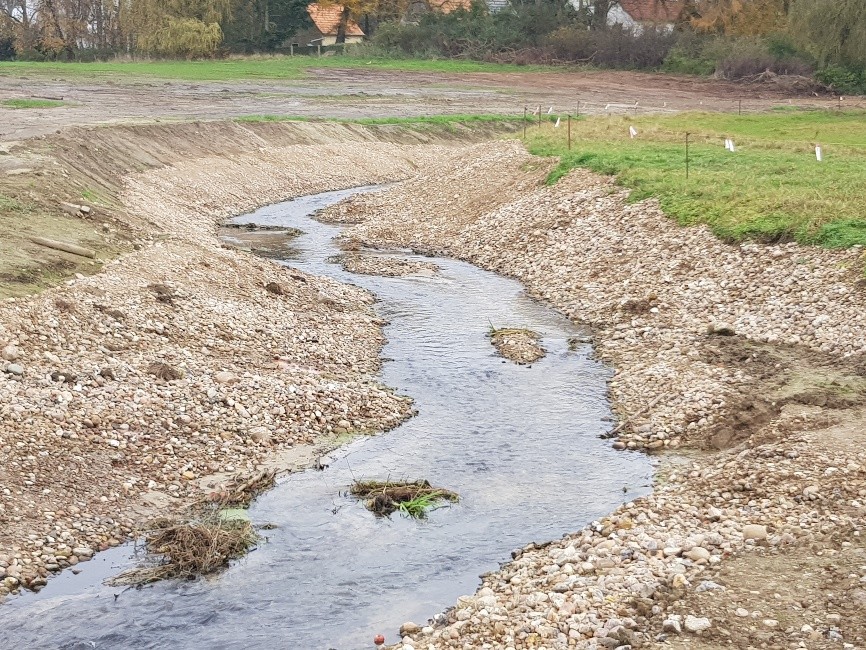 Die Bauumsetzung stellt dabei die Weichen und markiert den Beginn für die gewünschte Entwicklung. Die fließende Welle gestaltet den Gewässerlauf unmittelbar; auf den angrenzenden zur Verfügung gestellten Flächen der Wasserwechselzone und des Entwicklungskorridors etablieren sich entsprechende Stauden und Gehölze.